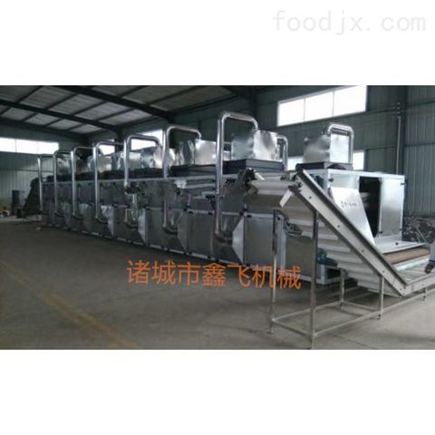 烘干機物料由加料器均勻的鋪在網帶上,有傳動裝置拖動在干燥機內移動。傳動部分是不銹鋼網帶或不銹鋼沖孔鏈板,他的優勢就是散熱率非常高且熱氣流幾乎是垂直穿透物料,所以空氣介質上、中、下層分別與物料接觸,上層為高溫氣流與含水率高的物料接觸,使其能實現快速脫水的目的。中層為室溫氣流,使物料實現后期干燥。下層為室溫氣流,穿透物料層即降低了料溫,又保護了物料原本的色澤,從而滿足了許多食品、工業和農場物料干燥工藝的特性要求。