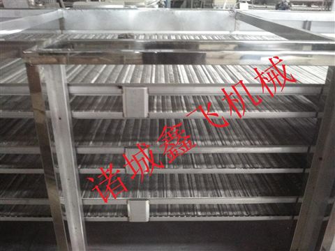 主要用途: 采用網帶雙向輸送原理,熱風爐加熱或煙道氣為干燥介質進行烘干。即提高設備空間的利用率,又改善通風干燥條件。 主要由頭架、尾架、中間架、牽引鏈、網鏈、導軌、自動張緊裝置、自動加熱設備等部分組成。由機頭頂部進料口流入烘干機上層網帶,經網帶平穩運行到烘干機尾部,沿溜槽流入下層,再送回機機頭,如此往復,在熱風烘烤下,逐步干燥,由機尾部送出。 網帶烘干機性能特點: